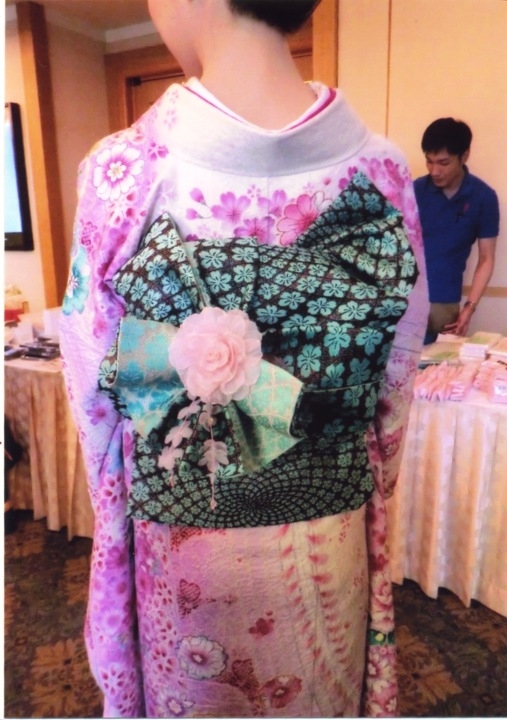 プレゼントの箱にリボンを結んだような帯結び。結(ゆい)の文字には結ぶ、つなぐ、
